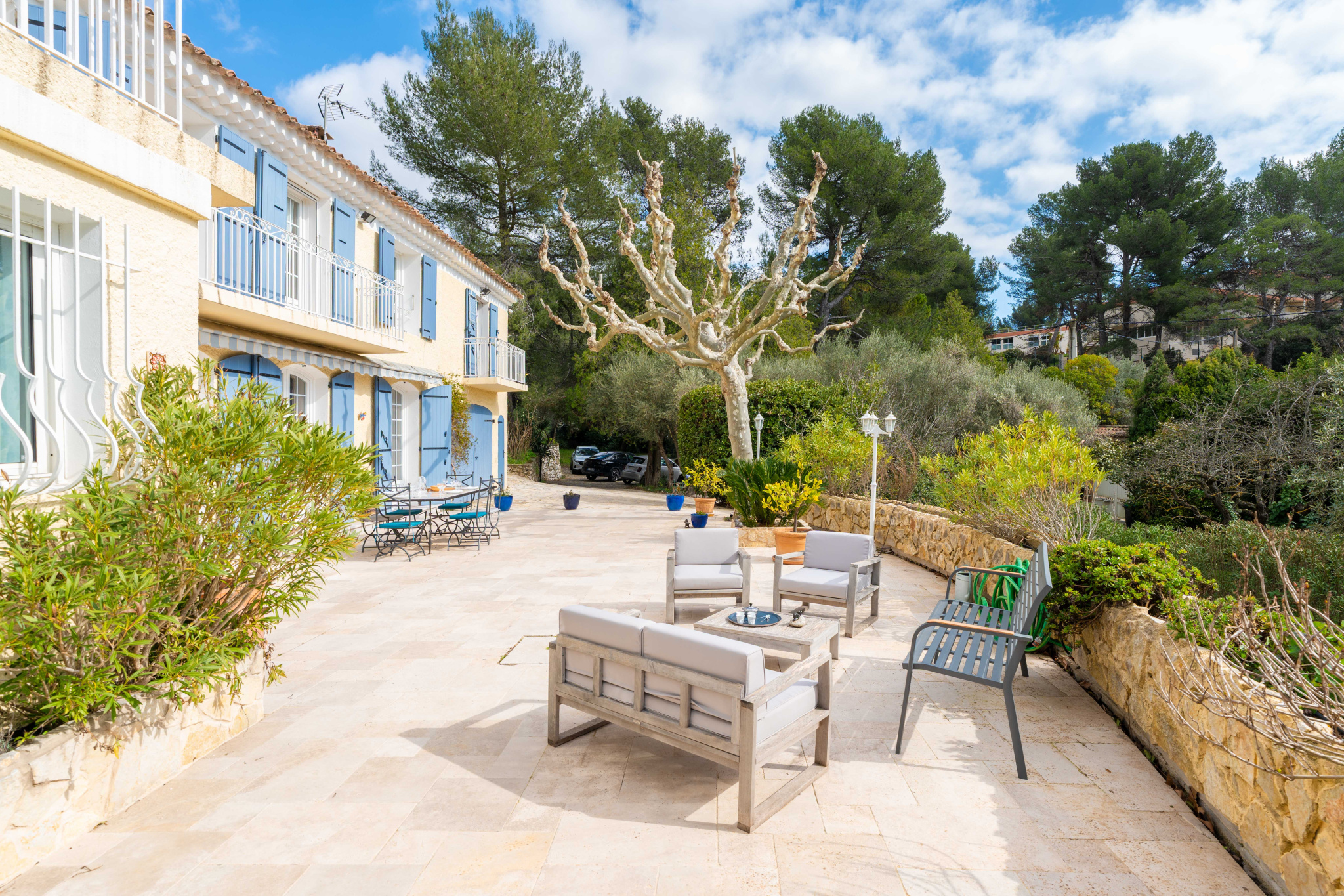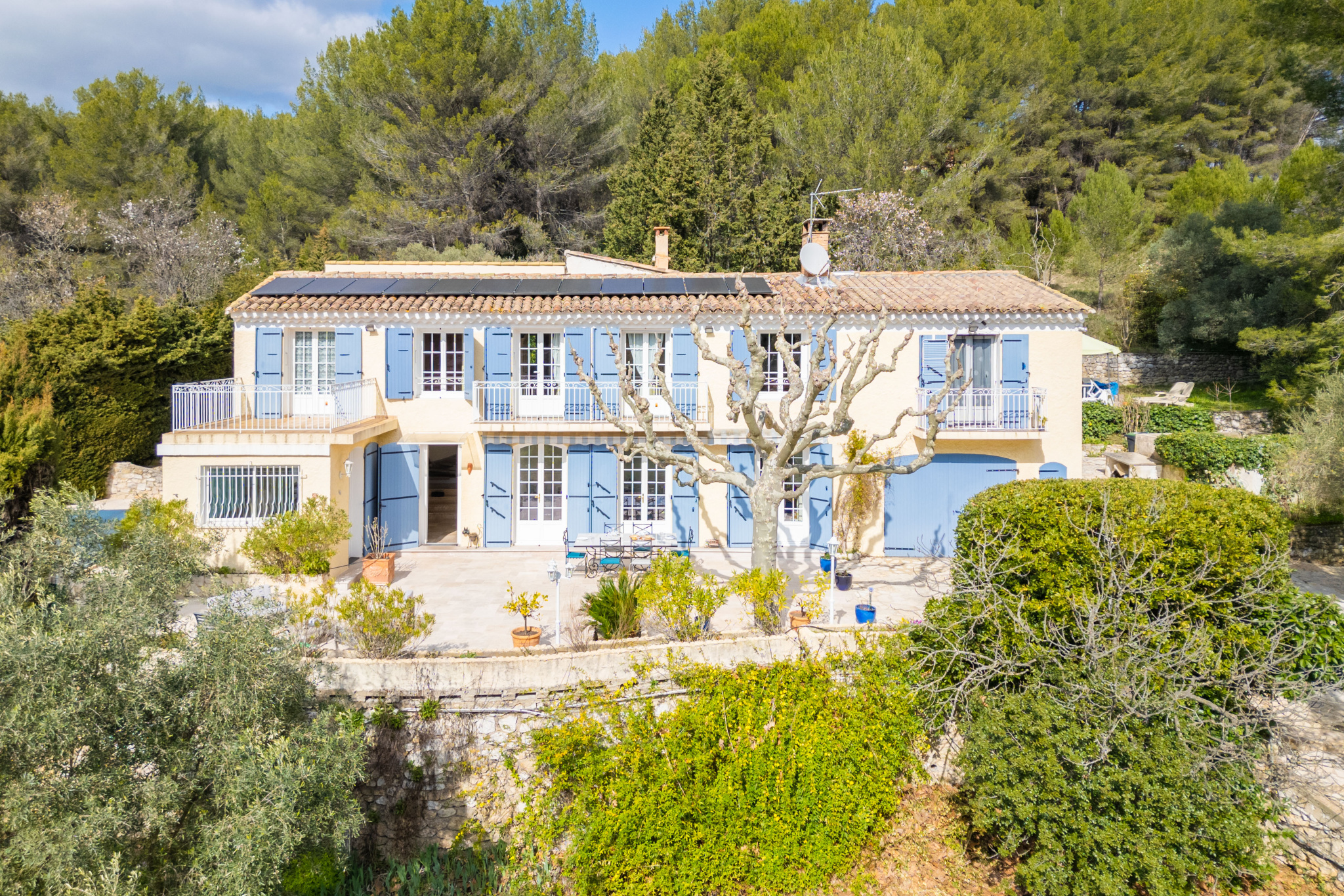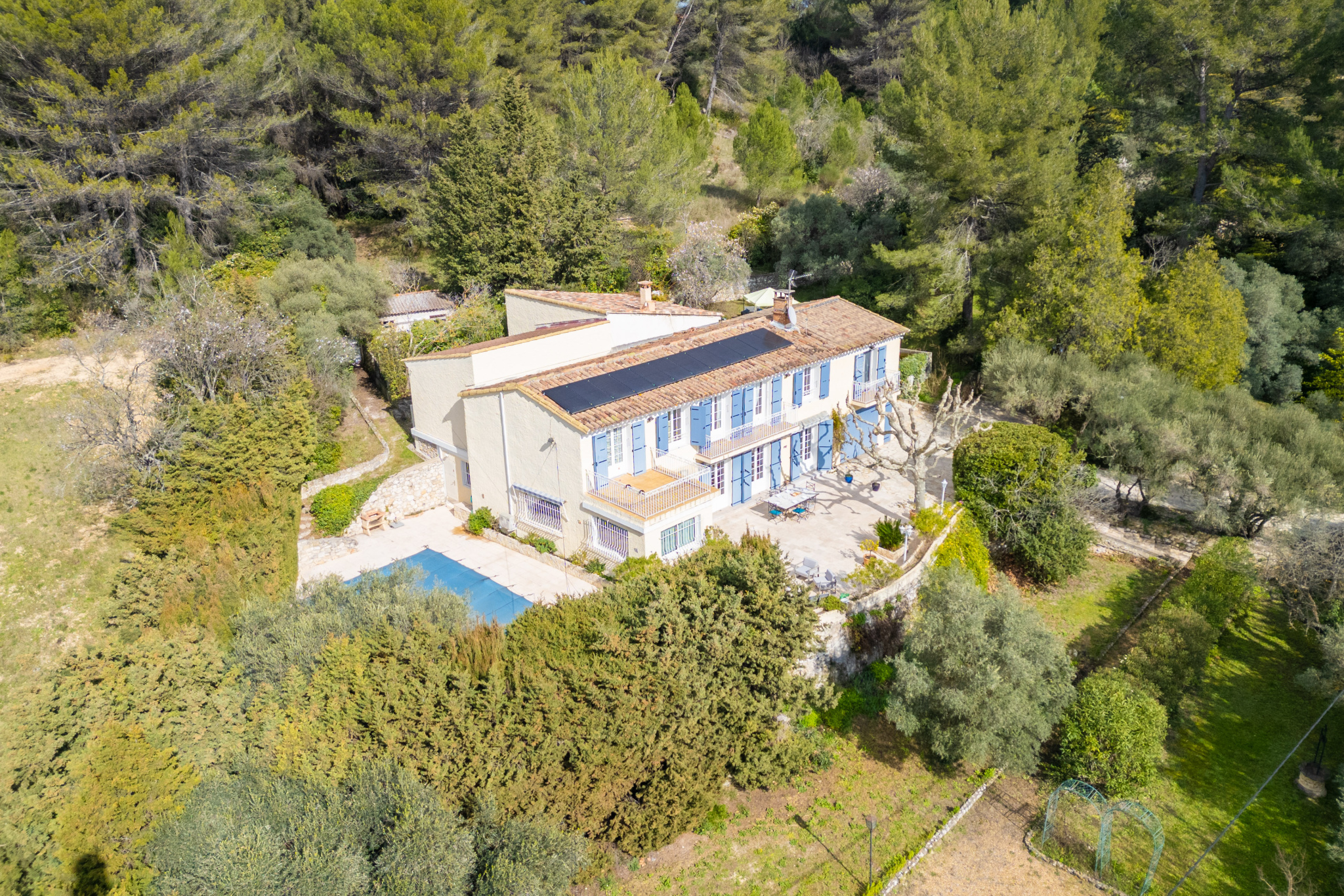 Située au pied du massif du Garlaban,sur la route d'Eoures,cette propriété comprenant un type 6 et un type 2 bénéficie d'un environement naturel privilégié avec un accès direct à de nombreux chemins de promenades et de courses à pied.